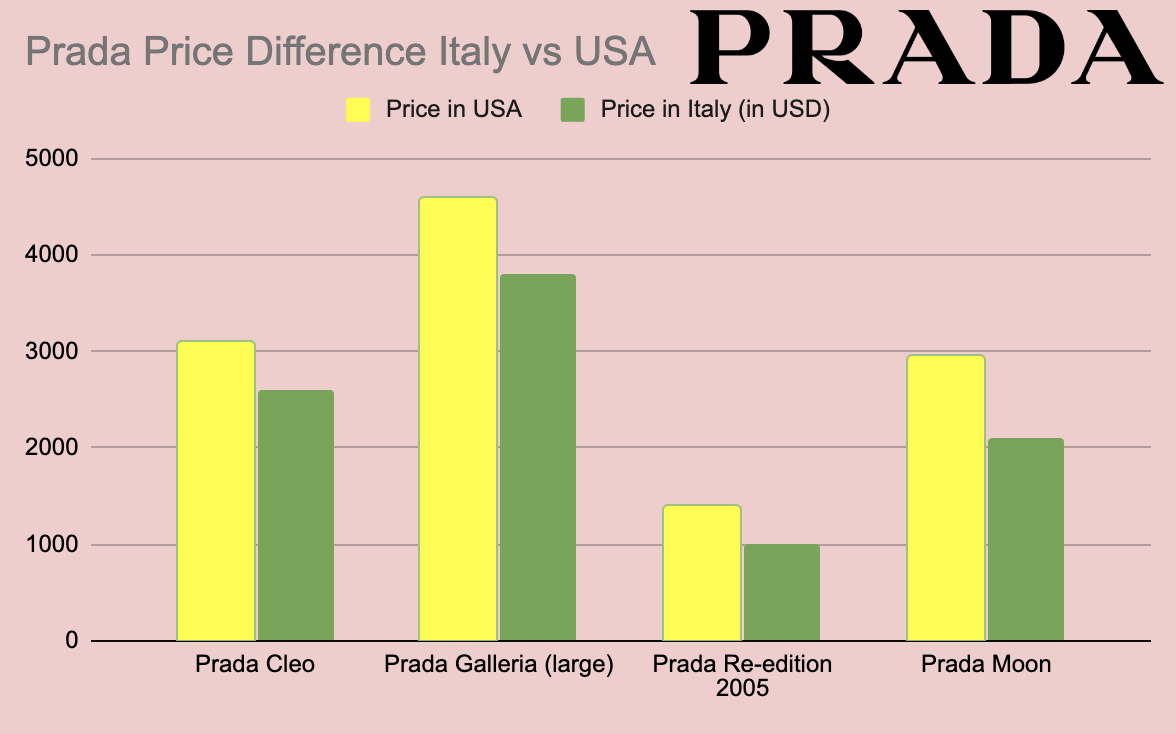 As you can see, Prada is cheaper in Europe and by quite a lot, especially for American tourists that can get a VAT refund.