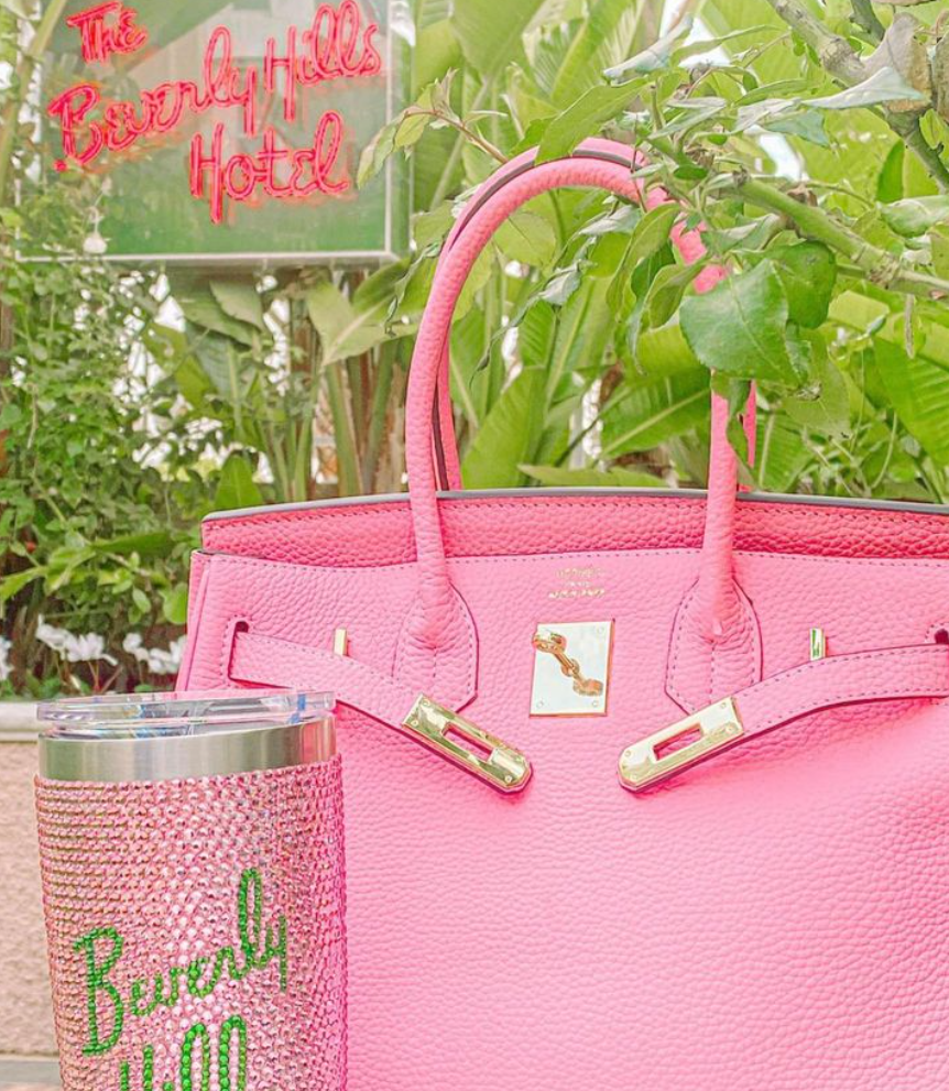 7. Pink Hermes Birkin outfits ; keep it classy with a pair of neutral pants